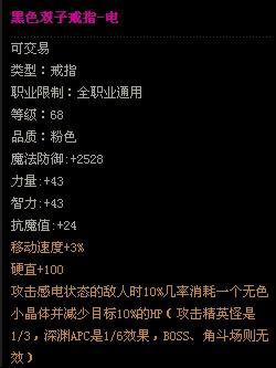 Lv55以上可以使用 魔法防御力+2115 力量+39 智力+38 抗魔值+11 攻击速度+2% 移动速度+2% 施放速度+2% |